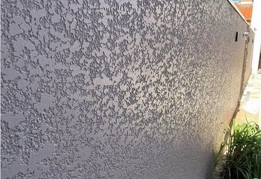 Revestimento texturizado e decorativo para paredes, feito de massa acrílica com pedras de quartzo, que cria um efeito rústico riscado,